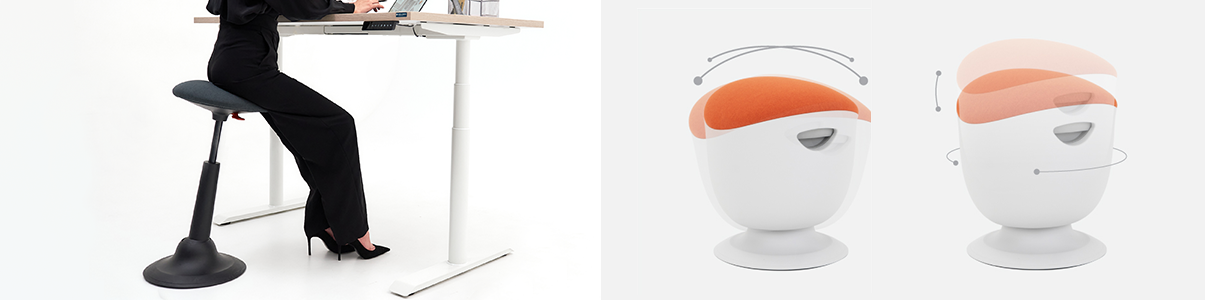 Помимо эргономичных кресел, производители мебели активно разрабатывают и выпускают на рынок т. н. фитнес-стулья. Они предназначены специально для поддержания тела в ресурсном состоянии и отлично подходят в качестве альтернативного варианта для занятых сидячей работой людей. Разные по конструкции модели позволяют работать в положении сидя/стоя, тренировать талию. Специальная модель «стул-седло» позволяет достичь максимально комфортного положения ягодиц.