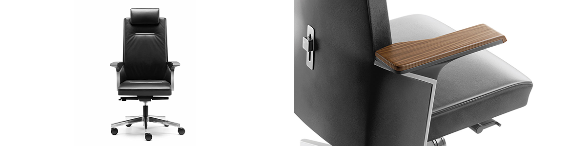 К премиальным моделям, например, относится функциональное кресло для руководителей K01 от французской компании Sokoa. Оно выполнено из исключительно качественных материалов: основа — из натуральной кожи или ткани, пятилучевая полированная алюминиевая база, регулируемые подлокотники, прорезиненные ролики. Помимо этого, есть возможность отрегулировать подголовник и поясничную поддержку.