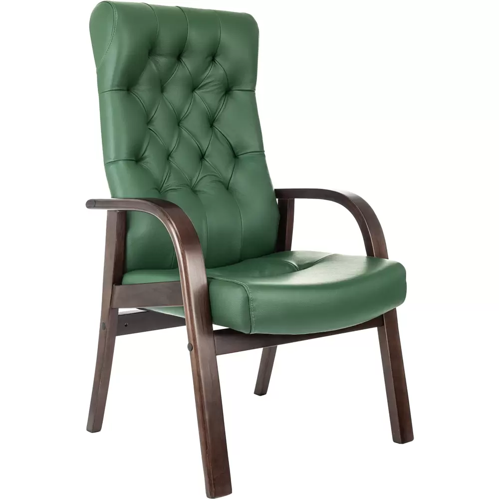 Кресло Бюрократ T-9928WALNUT-CF, натуральная кожа, зеленый, каркас дерево