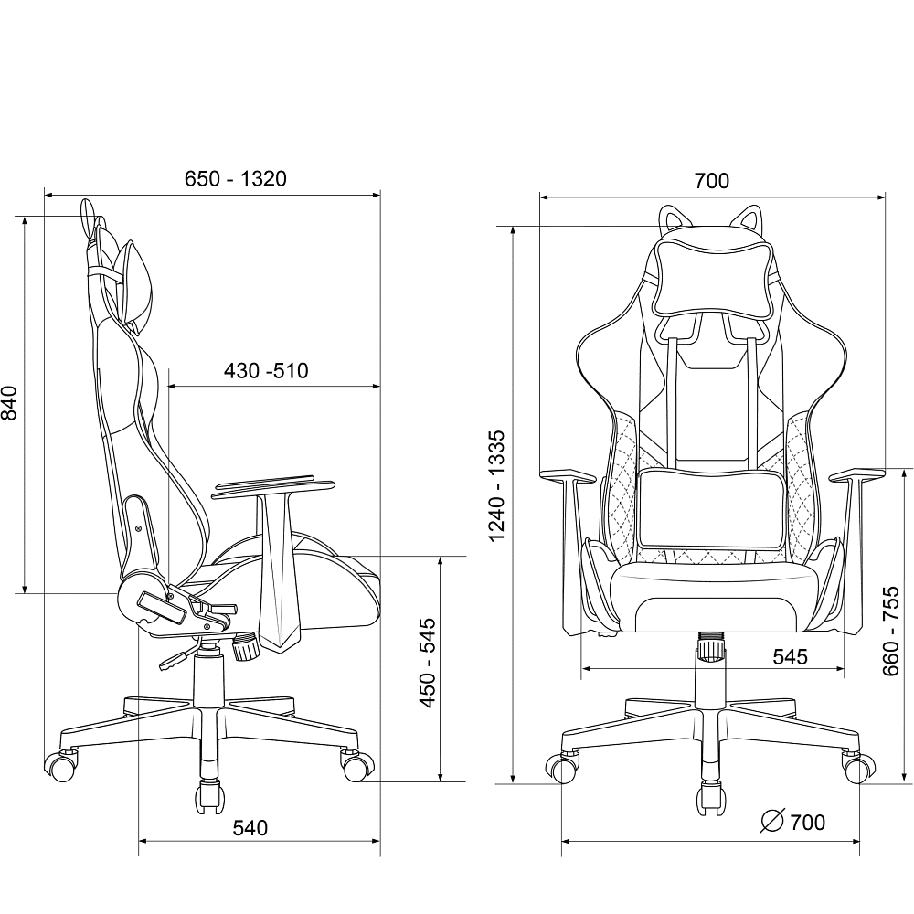 Боковые опоры в спинке, Регулировка под вес , Съемная подушка для поддержки поясницы, Угол наклона спинки до 150°