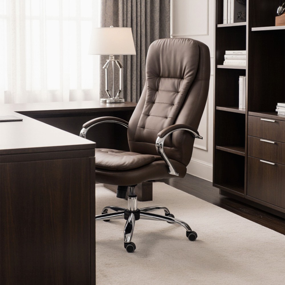 AksHome Richard New Chrome — это офисное компьютерное кресло, которое несомненно станет отличным выбором для создания комфортного рабочего места. Одним из преимуществ этого кресла является его материал обивки — экокожа, которая обеспечивает не только удобство, но и долговечность. Вы сможете забыть о проблемах с передвижением кресла благодаря хромированной стали, из которой выполнена крестовина. Максимальная нагрузка до 120 кг гарантирует надежность и безопасность во время использования кресла. Дополнительно, благодаря механизму качания DMSL, вы сможете установить угол наклона кресла в любом положении, что позволит вам найти самую комфортную позицию для работы. Нерегулируемые подлокотники обеспечат поддержку для рук во время работы. AksHome Richard New Chrome — это кресло, которое сочетает в себе комфорт, стиль и надежность, делая его идеальным выбором для вашего рабочего пространства.
