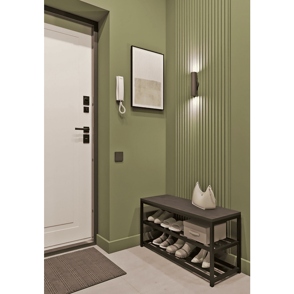 Встроенные полки вмещают до 8 пар обуви. Обувь будет аккуратно уложена, а благодаря интегрированному сидению из высококачественного ЛДСП толщиной 18 мм, всегда есть место, чтобы сесть и удобно надеть обувь. Каркас выполнен из сварного стального профиля 20×20 мм с качественным полимерным покрытием.